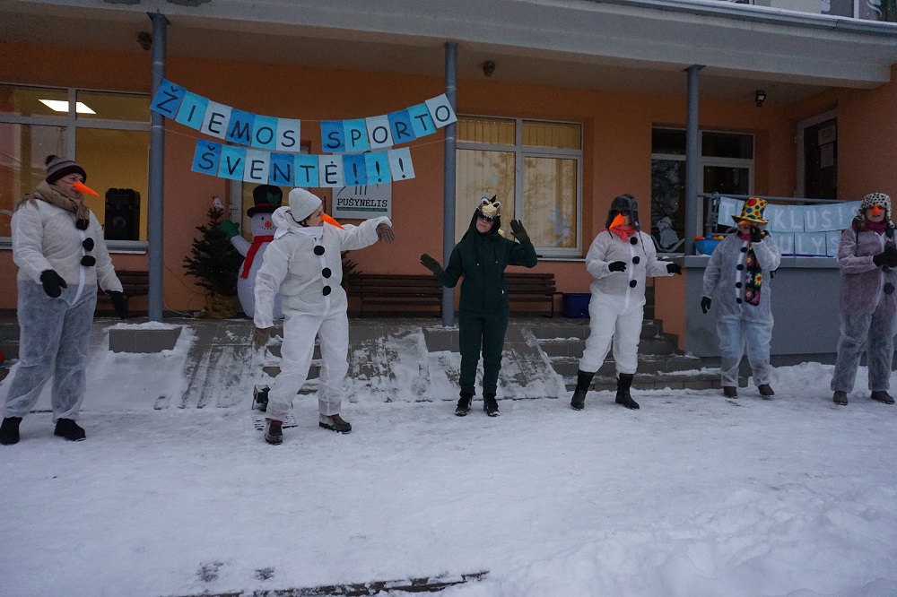 Didžiulės sniego pusnys ir puikus žiemiškas oras pakvietė ugdytinius aktyviai praleisti laiką lauke. Kartu su linksmaisiais besmegeniais vaikai žaidė ledo ritulį, ieškojo pusnyse pasislėpusių lapių, mėtė į taikinį, leidosi nuo kalniukų su pačiuoštukais, rungtyniavo estafetėse. Visus lydėjo džiugi nuotaika judant,